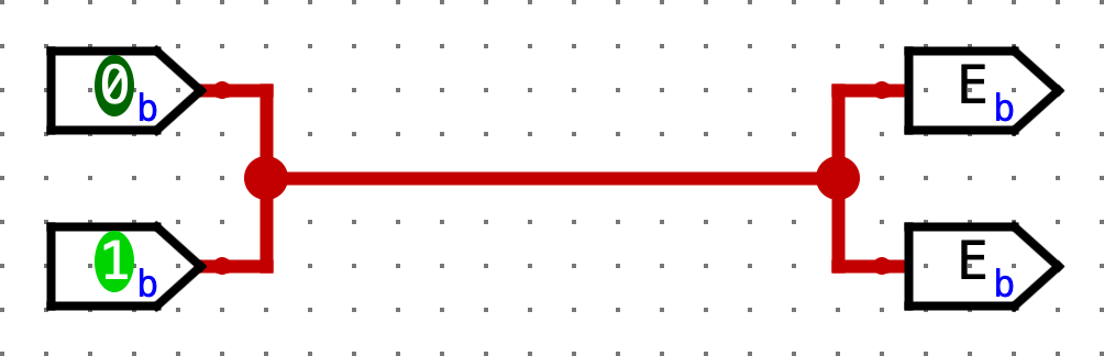 Red (values with EEEE) | The wire has multiple values on it (in this case, a 0 and 1 from the 2 inputs). Also, remember that a big circle appears at wire junctions. |